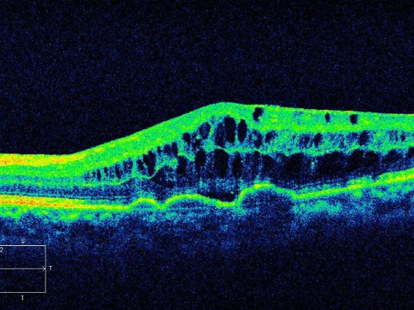 High-resolution imaging of the retina and macula for structural analysis.