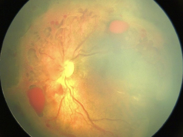 An untreated case of Diabetic Retinopathy with late diagnosis has become An Advanced Diabetic eye disease with Proliferative retinopathy, Preretinal and vitreous haemorrhage and Tractional retinal detachment. This stage requires a major vitreoretinal surgery with silicone oil tamponade and another procedure later on to remove the silicone oil